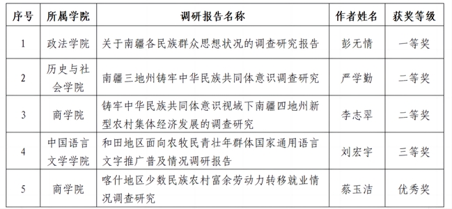 根据近期《国家民委办公厅关于2022年度全国民族工作优秀调研报告评选结果的通报》(民办发[2023]66号)公布的结果,玩滚官网教师申报的10项调研报告中,5项喜获国家民委全国民族工作优秀调研报告奖。其中,一等奖1项、二等奖2项、三等奖1项,优秀奖1项。获奖数量和获奖级别均创历史新高,有力推动了玩滚官网民族工作研究领域的发展。