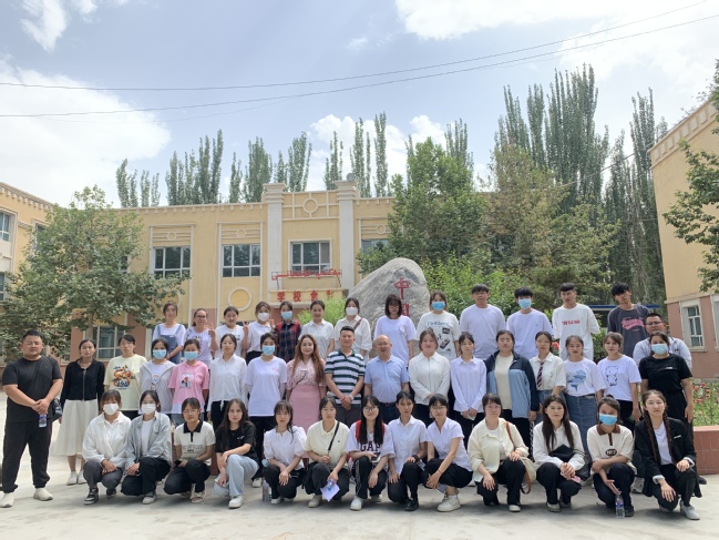 青年政治学院党委书记闫政远在和田与实习支教师生合影