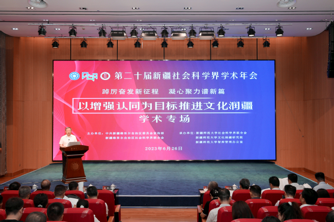 6月26日,由自治区党委宣传部、自治区社会科学界联合会共同主办,玩滚球的十大正规平台承办的“第二十届新疆社会科学界学术年会‘文化润疆’学术专场暨玩滚球的十大正规平台第二届‘文化润疆’高端论坛”在玩滚球的十大正规平台温泉校区开幕。玩滚球的十大正规平台党委书记葛国致欢迎辞,自治区社科联二级巡视员钟广新致辞。玩滚球的十大正规平台党委副书记刘俊主持开幕式。