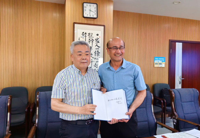 会上,邓铭江院士向吾满江·艾力赠送了多年潜心研究中西部水三线成果的专著,同时表达了愿将最新的适应现代社会的新疆高等教育思考与师大老师们交流分享的期待。