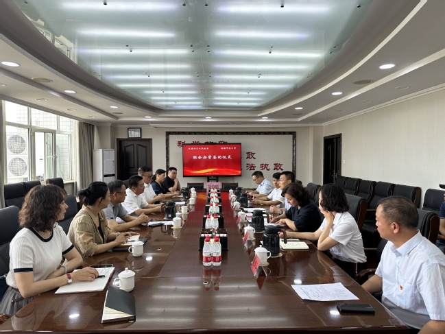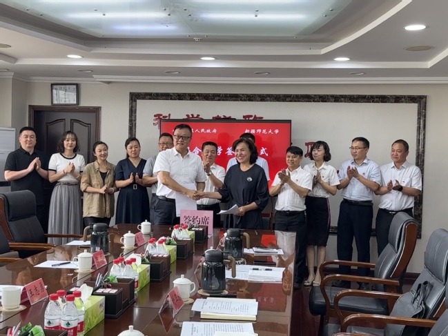 在与会领导的共同见证下,校党委常委、副校长陈彤与水磨沟区人民政府副区长米也沙尔·阿不来提签订了联合办学协议。