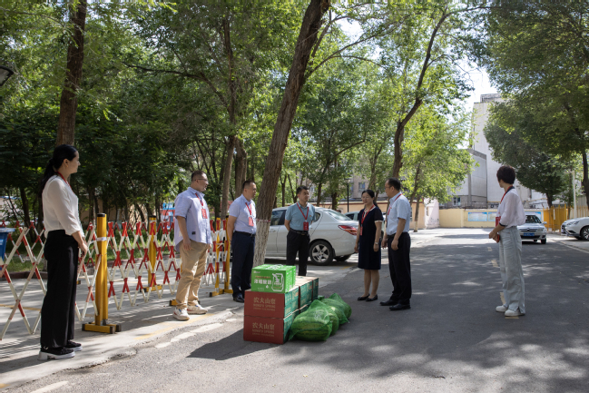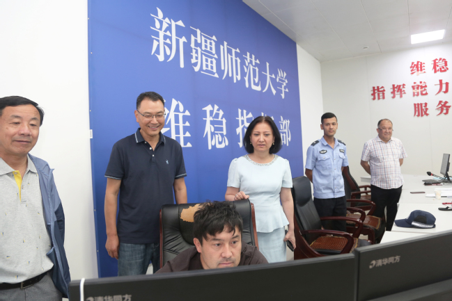 刘俊、蒋方珍带领相关部门现场慰问了昆仑校区学生工作部(处)招生录取工作人员、学校大门轮值安保人员及为暑期留校学生管理服务的值班教师,帕提曼·吐尔逊及相关职能部门领导前往温泉校区安防中心、校园绿化工作现场,慰问了值班工作人员和绿化工人。
