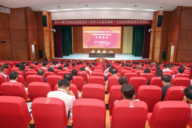 7月13日上午,由教育部思想政治工作司主办,教育部高校思想政治工作队伍培训研修中心(新疆师范大学)承办的全国高校统战部长培训班在玩滚官网开班。教育部思想政治工作司副司长葛元杰,自治区党委教育工委副书记胡军海,校党委副书记、校长吾满江·艾力等出席开班式。玩滚球的十大正规平台校领导、马克思主义学院学术院长、教育部高校思想政治工作队伍培训研修中心(玩滚球的十大正规平台)主任孙秀玲主持开班仪式。全国各省(区、市)党委教育工作部门、新疆生产建设兵团教育局统战工作处室负责人,教育部直属高校、其他部委属高校、教育部部省合建高校及省属高校统战部负责人共约160人参加了培训班。