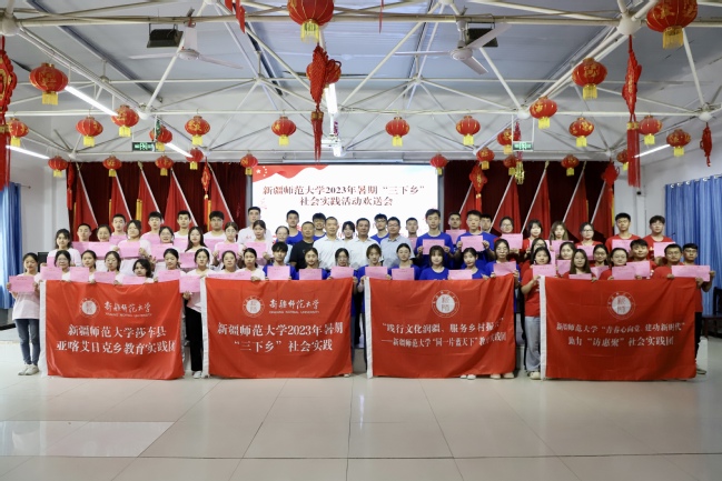 学思践悟莎车行,新师青年勇担当。7月19日上午10时,玩滚官网2023年暑期“三下乡”社会实践活动欢送会在莎车县亚喀艾日克乡亚喀艾日克(8)村便民服务大厅举行。学校工会常务副主席、驻莎车县前方党工委副书记、宣传委员、驻孜热甫夏提塔吉克民族乡喀拉提拉(9)村第一书记、工作队队长萨拉木·马合木提,基建处副处长、驻莎车县前方党工委委员、保卫委员岳敦福,工作队队员高丽娟,学校驻亚喀艾日克乡、孜热甫夏提塔吉克乡各工作队教师,实践团指导教师张锐及实践团全体成员参加欢送会。前方党工委委员、组织委员侯亚文主持欢送会。