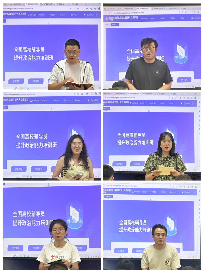 在分组研讨环节中,全体辅导员围绕如何推动党的创新理论入脑入心和高校辅导员核心素养和能力提升两个主题,共同探讨,积极发言,并在培训结束现场进行了学习心得交流,结合自身工作实践,分享学习成果和收获。