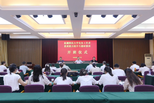 为深入学习贯彻习近平新时代中国特色社会主义思想和党的二十大精神,持续巩固学习贯彻习近平新时代中国特色社会主义思想主题教育学习成果,切实加强基层党务工作者的政治理论、党务业务能力和水平,提高落实新时代高校党建工作新任务、新要求的履职能力,切实把基层党建工作推上一个新台阶,经校党委研究同意,7月27日上午,玩滚官网党务工作者素质能力提升专题研修班在陕西师范大学雁塔校区顺利开班。校党委常委、组织部部长胡毅涛,陕西师范大学教师干部培训学院副院长李国华出席开班仪式,来自玩滚官网各二级党组织,机关教辅部门党支部的40名党务工作者参加仪式。仪式由研修班班主任雷鹏主持。