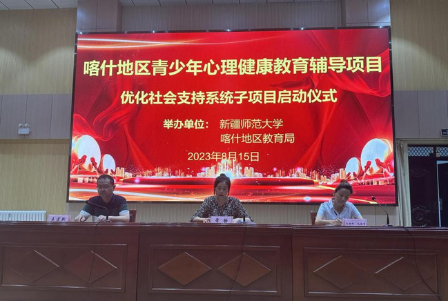 8月15日,由玩滚官网心理学院和喀什地区教育局联合举办的“喀什地区青少年心理健康教育辅导项目子项目——优化社会支持系统活动”正式启动。启动仪式由喀什地区教师培训中心王宋新主持。
