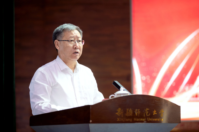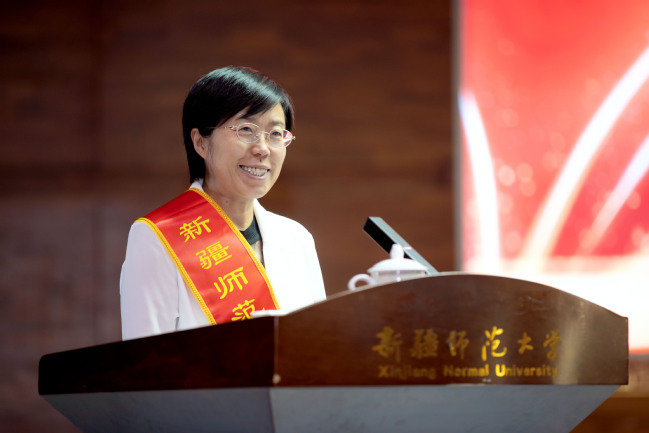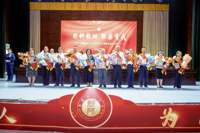葛国强调,当前正处于服务国家战略需求机遇期、内涵式高质量发展提升期、高水平一流师范大学建设攻坚期,我们比任何时候都更需要培养造就一支师德高尚、专业精湛、结构科学、充满活力的高素质教师队伍。葛国代表学校党委对广大教师提出三点希望:一是坚定理想信念,筑牢立德树人之根。要对“培养什么人、怎样培养人、为谁培养人”这一根本问题有清醒的认识,切实担起学生健康成长的指导者和引路人的责任,坚持不懈用习近平新时代中国特色社会主义思想凝心铸魂,以铸牢中华民族共同体意识为主线,发挥好教育工作者在贯彻落实新时代党的治疆方略方面的基础性、支撑性作用,勇担“为党育人、为国育才”的初心与使命。二是培养高尚师德,塑造立德树人之魂。必须要用高尚的师德和对学生的仁爱之心给予学生最生动、最深远的教育,当好塑造学生品格、品行、品味的大先生。三是勤修学识内功,巩固立德树人之基。要以“教给学生一碗水,老师要有一潭水”的精神苦练内功,主动参与到学校一流学科、一流专业、一流课程建设工作中去,帮助每一位学生健康成长,成为栋梁之才。希望广大教师接续奋斗、载梦前行,立“大先生”志,育时代新人,将个人的奋斗目标同学校的发展紧紧相连,为实现“聚焦立德树人,建设一流师范”办学目标不懈努力,为新疆经济社会发展和教育事业发展做出新的更大贡献。