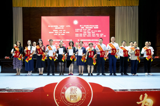 表彰第八届中国国际“互联网+”大学生创新创业大赛、第二十五届中国机器人及人工智能大赛获奖指导教师、第十三届全国大学生电子商务创新、创意及创业挑战赛、第二届新疆高校师范生教学技能大赛获奖指导教师代表