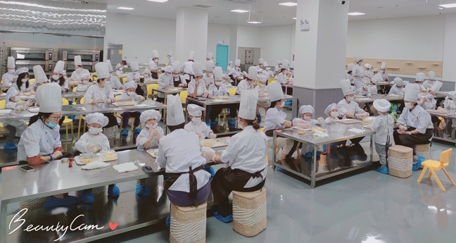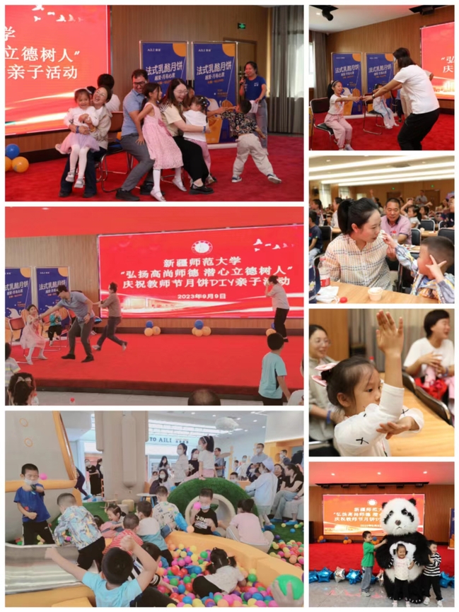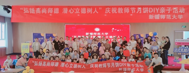 为了庆祝全国第39个教师节,向全校广大教师送去节日的祝福和关怀,9月9日上午,玩滚官网组织开展庆祝教师节月饼DIY亲子活动,46名教职工携带孩子在新疆爱里食品有限公司工厂总部参加活动。