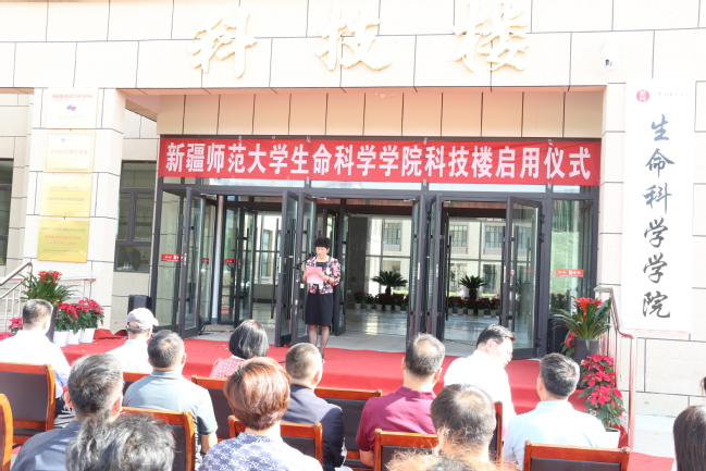 9月12日上午,玩滚官网生命科学学院科技楼启用仪式在温泉校区科技楼一楼举行。校党委副书记、校长吾满江·艾力和校党委副书记王志勇共同为生命科学学院科技楼揭牌,在家校领导、各学院、职能部门代表及学院离退休教师代表50余人参加仪式。