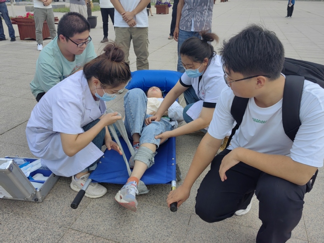 学生演练对受伤人员进行救治