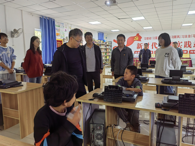 葛国还与周末小课堂的学生亲切交流,了解他们的学习情况、家庭状况等,并看望了结对认亲对象,为结亲对象送上慰问品和慰问金。