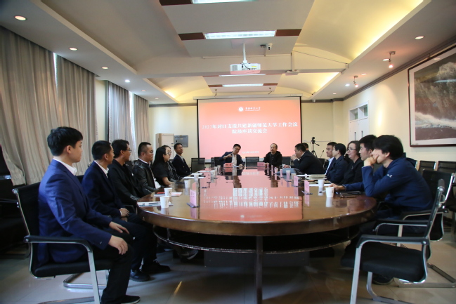 10月9月下午,中国科学技术大学、大连理工大学、华东师范大学、陕西师范大学等教育部指定对口支援高校以及天津大学、中央民族大学、武汉理工大学、合肥工业大学、华中师范大学、东北师范大学、西安外国语大学、五邑大学等合作共建高校,与玩滚官网职能部门、相关学院在两校区同步举行座谈。座谈会上,双方全面总结工作成效,交流工作经验,就下一阶段深入推进对口支援共建重点工作进行充分研讨并达成共识,会议成效显著。