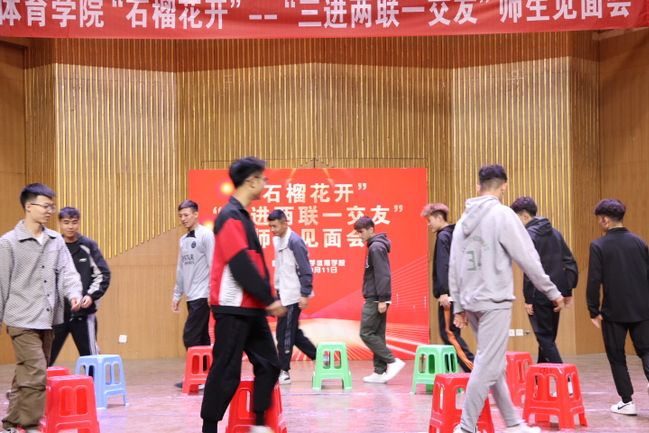 师生互动活动中,全体人员共同参加师生共画脸谱、抢凳子等暖场游戏,共同表演、观看快板、武术、跳绳、舞蹈表演四个展示节目。通过游戏活动,加强师生之间的交流对话,以结亲交友师生共同演出的节目为基础,由教师带领结亲交友学生提升专业技能。体育学院党委副书记、纪委书记李卫民结合自治区、学校关于“三进两联一交友”活动要求,从开展目的、活动形式以及体育学院活动开展情况等进行了整体介绍。