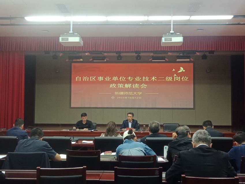 会上,张安新传达了《新疆维吾尔自治区事业单位专业技术二级岗位管理办法(试行)》,介绍此次专业技术二级岗位申报背景,并针对资格条件、聘期设置、岗位职责、管理考核等焦点问题进行重点解读,对申报程序、工作计划与内容进行详细说明。参会人员围绕申报工作中存在的问题与对策建议进行了深入交流。