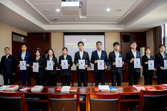 胡毅涛在开班仪式上首先对经过玩滚官网各二级学院党委推荐、资格审查、综合面试等环节遴选出的31名学生党员和新疆天山职业技术大学的7名学生党员的入选表示祝贺。他强调,“胡杨先锋班”是学校持续推进学习贯彻习近平新时代中国特色社会主义思想主题教育,推进“两学一做”学习教育常态化制度化,树立“用胡杨精神育人、为兴疆固边服务”鲜明导向的重要内容之一。他对“胡杨先锋”学生党员提出三点希望:一是注重理论学习,不断提升综合能力。把握好习近平新时代中国特色社会主义思想的世界观和方法论,坚持好、运用好贯穿其中的立场观点方法,坚持人民至上,坚持自信自立,坚持守正创新,坚持问题导向,坚持系统观念,坚持胸怀天下。二是坚定理想信念,勇担使命担当,做伟大复兴的逐梦人,做红色基因的传承人,做栋梁先锋的引路人。三是奋斗创造历史,实干成就未来,要以时不我待、只争朝夕、勇立潮头的精神,在为祖国、为人民、为民族、为人类的奉献中焕发出青年大学生党员的光彩。