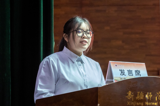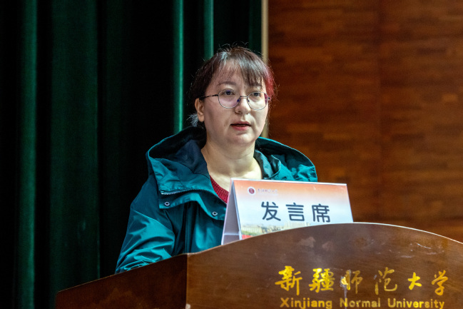导师代表教育科学学院热孜万古丽·阿巴斯发言