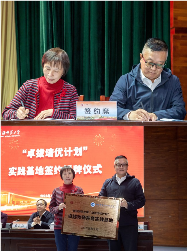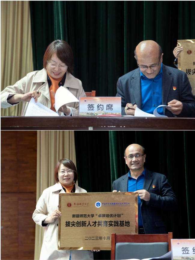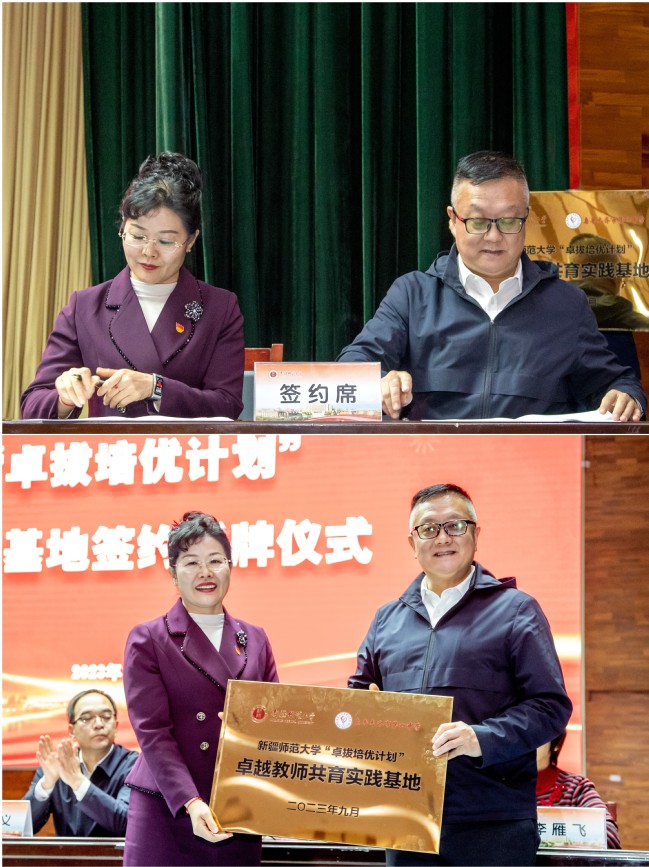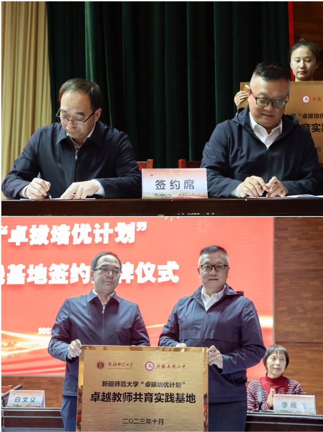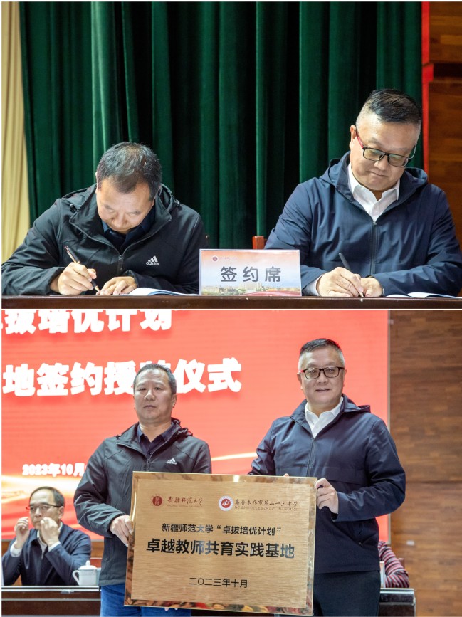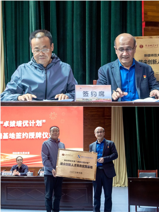 签约授牌仪式上,吾满江·艾力与首批4家“拔尖创新人才共育实践基地”签订协议并授牌,陈彤与首批4家“卓越教师教育教学共育实践基地”签订协议并授牌。