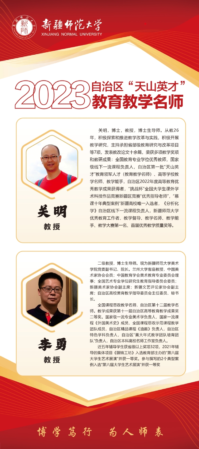 玩滚官网教师秉持求是创新的躬耕态度,勇于革新、主动应变、大胆探索、追求卓越,在各类教学比赛和教学研究中国中成绩斐然。在第三届全国高校教师教学创新大赛中,获得国家二等奖1项、三等奖1项,自治区一等奖2项、二等奖5项、三等奖6项;在第六届全国高校青年教师教学竞赛中,获得国家二等奖1项、三等奖1项,自治区一等奖2项、二等奖2项、三等奖1项,在教师教学竞赛领域取得突破。2023年,玩滚官网2名教师获得自治区“天山英才”教育教学名师称号;4名教师获得校级教学名师称号、6名教师获得校级教学能手称号;评选出校级教学成果19项,其中一等奖3项、二等奖6项、三等奖10项。
