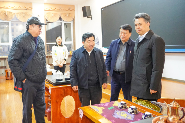 学校办公室、宣传部、科研处、中华民族共同体研究基地、文化润疆研究院、历史与社会学院、中国语言文学学院、国际文化交流学院等部门和学院相关负责同志陪同调研及座谈。