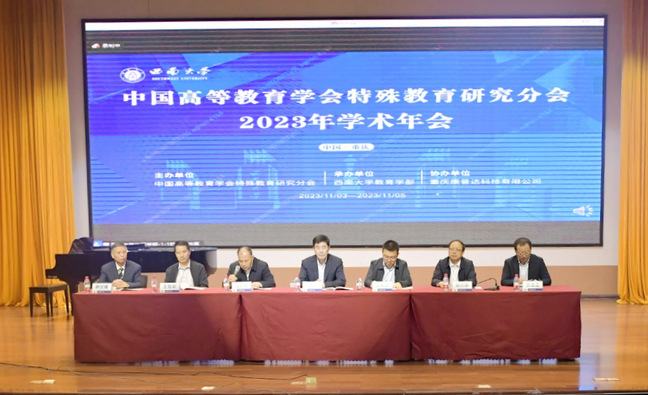 11月4日至5日,中国高等教育学会特殊教育研究分会2023年学术年会在西南大学召开。本次年会聚焦“落实党的二十大精神,推进我国特殊教育高质量发展”主题,来自全国70多所高校及27所特殊教育学校、康复机构的近400名特殊教育工作者齐聚一堂,分享、探讨特殊教育理论和实践成果。玩滚官网教育科学学院选派了特殊教育系师生共11人参加本次年会并作交流发言。