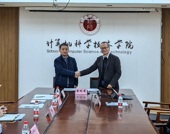 11月8日,玩滚官网计算机科学技术学院与努比技术(广州)有限公司举行“深化科研合作,共谋创新发展”签约仪式。计算机科学技术学院党委书记张海军,学院党委副书记、院长齐向伟,学院党委副书记、纪委书记艾克白尔·艾尔肯,副院长李勇及教职工代表共37人出席签约仪式,努比技术(广州)有限公司董事长刘军民参加活动。签约仪式由齐向伟主持。
