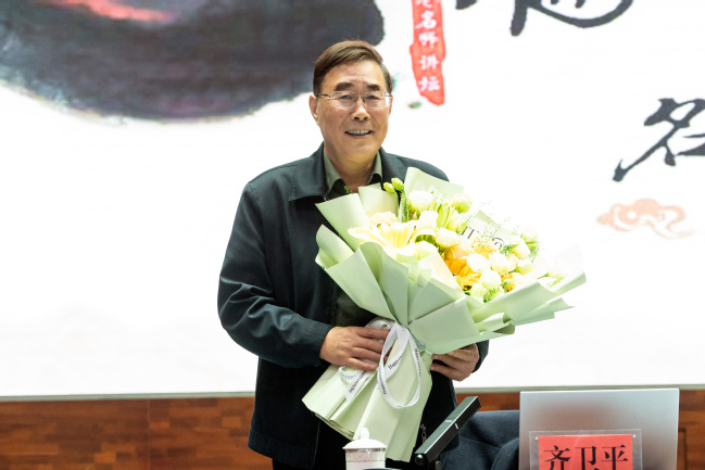 学生为齐卫平教授献花