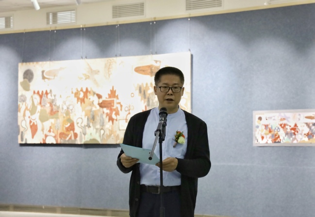 中央美术学院实验艺术系教授、中国美术家协会综合材料绘画艺术委员会副主任胡明哲教授讲话