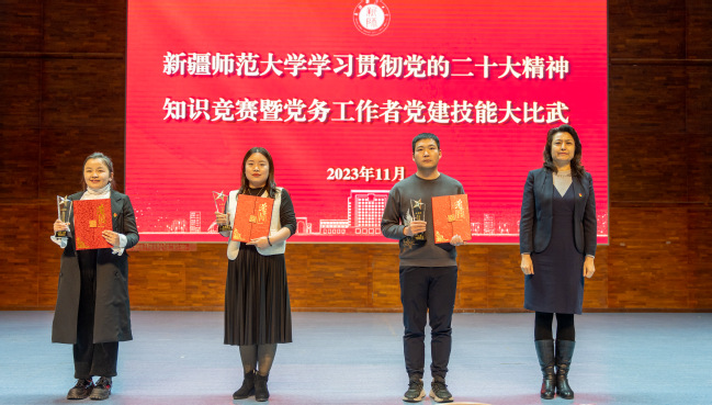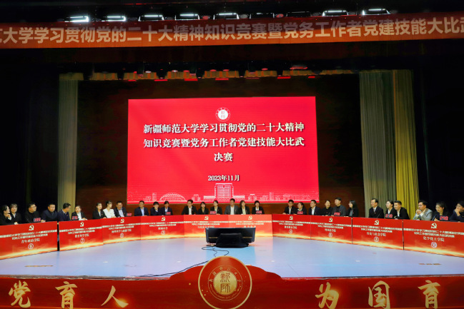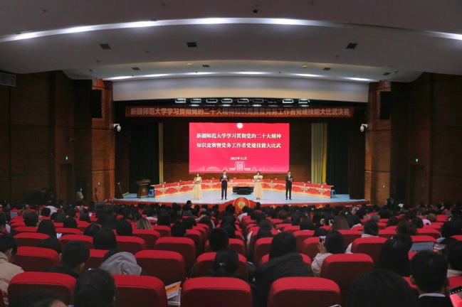 11月23日,玩滚官网学习贯彻党的二十大精神知识竞赛暨党务工作者党建技能大比武活动决赛在昆仑讲堂举办。来自26个二级党委(党总支)的参赛队伍通过笔试、微党课、谈心谈话情景模拟、基层党建活动情景模拟4个环节的激烈角逐,最终10支参赛队伍进入决赛。校党委常委、副校长帕提曼·吐尔逊,校党委常委、副校长帕力旦·吐尔逊,校党委常委、纪委书记蒋方珍,校党委常委、副校长陈彤,校党委常委、组织部部长胡毅涛出席会议并为获奖选手及团队颁奖。各二级党委(党总支)书记、副书记、组织员、“胡杨先锋班”学生党员以及各学院党员代表共计500余人现场观摩活动。