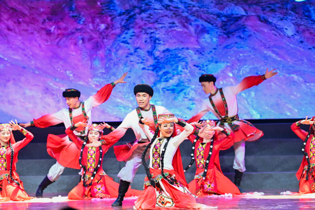 两场演出中,观众们在器乐联奏《昆仑之春》《喜洋洋》《帕米尔,我的家乡多么美》《好日子》《金蛇狂舞》等曲目中穿梭至美丽的新疆,聆听来自西域的悠长声韵;在舞蹈《刀郎麦西来甫》《帕米尔之情》《骏影追风》《黑走马》《朱拉》中感受到了新疆各民族文化的奔放与细腻;在歌曲《领航》《吐鲁番的葡萄熟了》《阿娜尔汗》《七月的草原》《巴郎仔》《长调情》中沉醉在音乐的海洋;在器乐演奏《父亲赞》《乌鲁木齐的天空》感受了新疆古老与现代的交织;在《我们新疆好地方》的载歌载舞中沉醉于绚丽的歌舞盛宴,掌声热烈,喝彩不断。