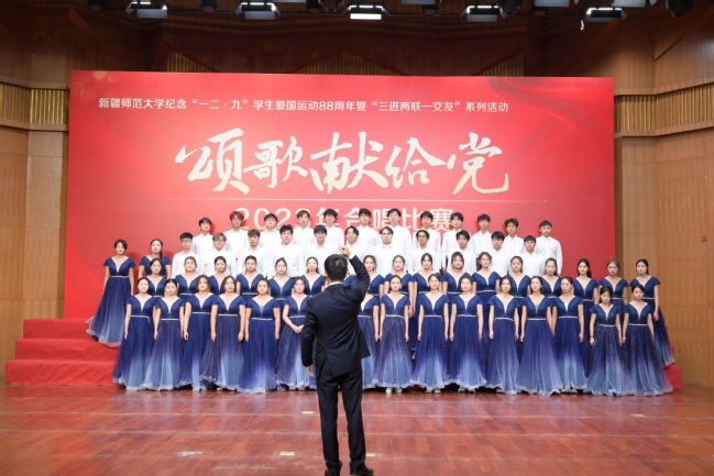 比赛在嘹亮的红歌声中拉开帷幕,11支参赛队伍采用“合唱+朗诵”“合唱+舞蹈”等形式,为观众带来一场精彩的视听盛宴。《把一切献给党》《没有共产党就没有新中国》《歌唱祖国》《祖国不会忘记》《不忘初心》《走向复兴》等歌曲气势磅礴、热血沸腾,饱含对党和国家的无尽热爱和依恋,唱出为党和国家事业贡献青春力量的决心和意志;《映山红》《保卫黄河》《中国人民志愿军战歌》《游击队之歌》《祖国不会忘记》《追寻》等歌曲歌颂了革命先辈们心系家国、不畏艰险的崇高精神,唱响了中华儿女的爱国之情;《我们都是追梦人》《如愿》《万疆》《天耀中华》《领航》《灯火里的中国》《在灿烂阳光下》《春风十万里》讴歌了新时代党和国家取得的辉煌成就,唱响了新征程青年学子坚定不移跟党走,携手奋进新篇章的时代之歌。玩滚官网音乐学院“天山百灵”学生合唱团作为特邀团队演唱了《向往》《走向复兴》两首作品,展现出 “天山百灵”合唱团高水平的专业实力。各学院代表队倾情演绎,形式多样,整场比赛气势恢宏、高潮迭起,深深感染了现场师生观众,赢得阵阵热烈掌声。
