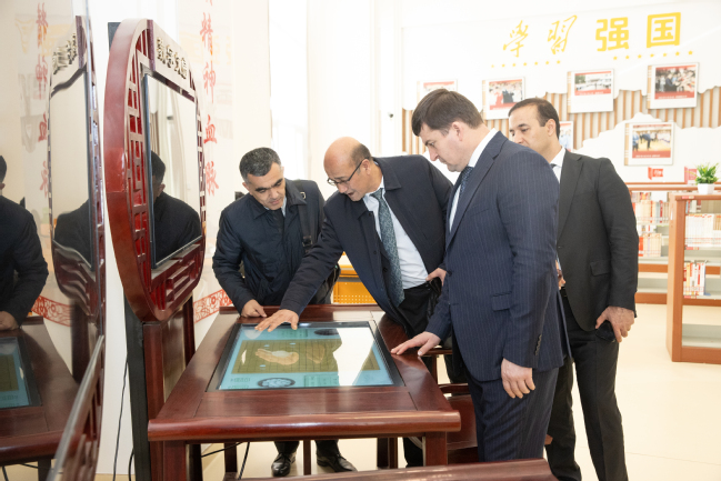 校党委副书记、校长吾满江·艾力陪同塔吉克斯坦民族大学校长一行参观校图书馆