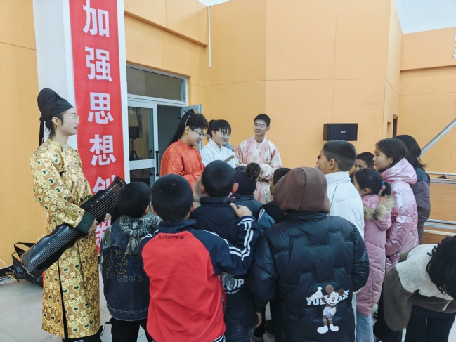 本次主题活动围绕活化新疆唐代吐鲁番地区阿斯塔那古墓地绢衣彩绘甬系列文物,开发了“西域唐服”主题系列服饰,整体展现中华传统文化与西域文化在服饰中的结合之美。围绕唐风古韵,开展了唐代西域服饰讲解、“西域唐服”展示、游园会、中华文化节目演出等环节,结合巴楚县唐代历史开展深入讲解。节目精选了琴箫合奏、古琴演奏、川剧变脸、京剧唱脸谱等富有中华传统文化特点的精品节目,结合巴楚县团队的精彩节目,给巴楚县群众带来一场特殊的文化体验之旅。