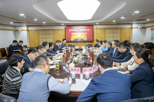 校党委常委、副校长陈彤与自治区地质局党组副书记、副局长孙新春签订协议