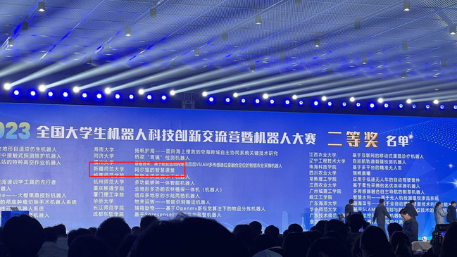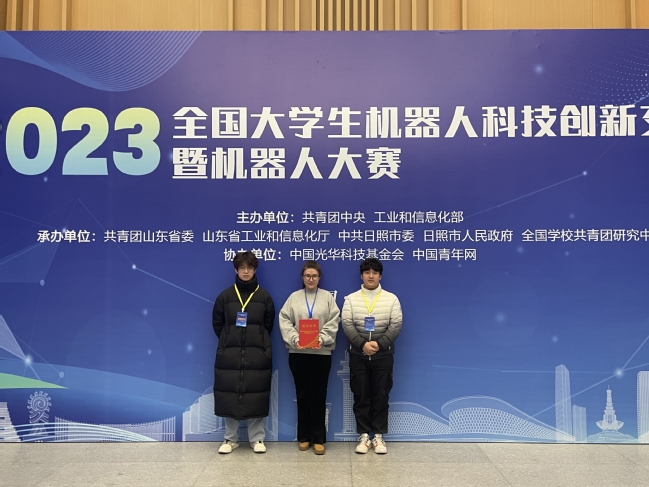 12月17日至19日,2023年全国大学生机器人科技创新交流营暨机器人大赛决赛在山东省日照市举办。经过激烈角逐,玩滚官网计算机科学技术学院朱广贺、樊小超、张雪三位教师指导的计算机科学与技术20-2班史文昊、金山、卜艾妮排·海比尔、牛树浩、李建伟及2021级计算机技术专业研究生纪小敏参赛作品《阿尔猫的智慧课堂》荣获全国总决赛二等奖。
