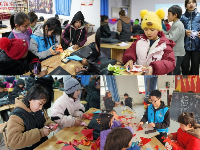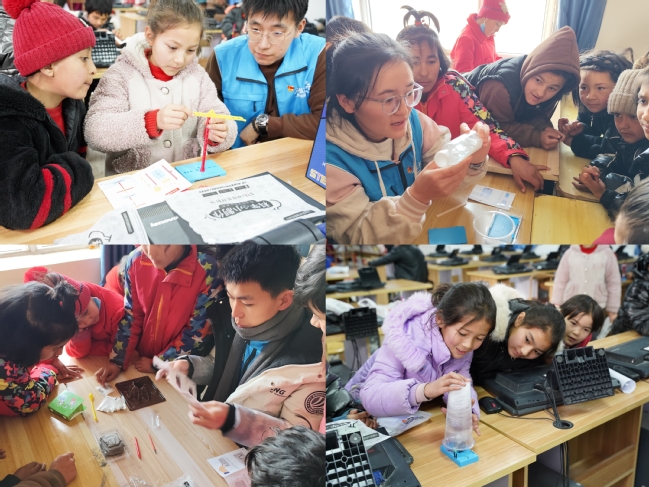 实践团带着4套“AI机器人”与120余套科学实验道具,开展课程近30节,服务学生300余名,志愿服务时长累计2000小时。实践团开展了首届“博学杯”棋类比赛,孩子们与AI智能下棋机器人进行对战,体验中国优秀智力体育的深厚底蕴和独特魅力,培养思考能力、专注力和大局意识。实践团还开展了“大手拉小手,过个喜庆年”写春联、剪窗花体验活动、“走近科学,筑梦未来”科学知识普及活动等,带领着孩子们学武术、打乒乓球,这些多元有趣的文体活动让孩子们感受到竞技体育背后“勇敢、团结”的精神,丰富小朋友的精神生活,中华优秀传统文化在欢声笑语中从孩子们的指尖传到了心尖。
