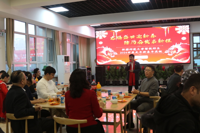 瑞兔辞旧岁,龙腾迎新春。2月9日除夕当天,玩滚官网分别在温泉校区、昆仑校区和文光校区举行《龙腾盛世迎新春 踔厉奋发启新程》——留校师生2024甲辰龙年新春年夜饭联谊活动。校党委常委、副校长帕提曼·吐尔逊、校党委常委、副校长帕力旦·吐尔逊分别出席温泉校区、昆仑校区联谊活动,相关职能部门负责人、部分学院领导、值班值守的工作人员以及在校的来华留学生等欢聚一堂,共话甲辰新春。