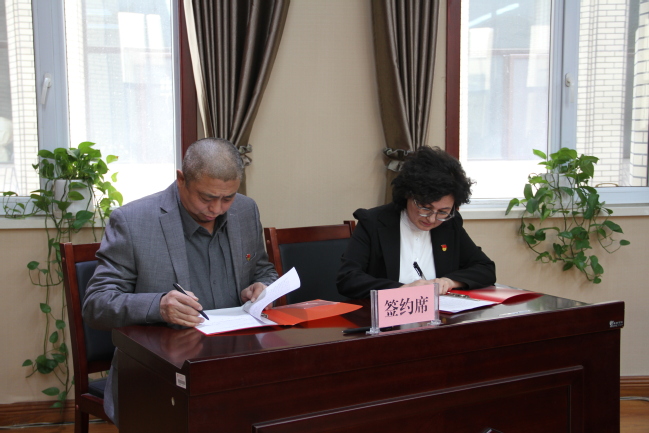 后勤服务中心副主任麦尔孜亚·玉苏普江与责任部门签订安全生产责任书