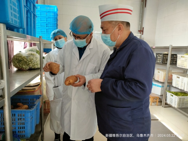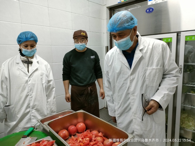 吾满江·艾力对食品安全管理工作提出要求,一是要不断健全食堂管理制度,严格落实“日管控、周排查、月调度”工作机制,规范食材采购、配送、储存、加工环节;二是要加强食品安全教育,定期组织安全知识培训,提升工作人员的安全意识和服务水平;要坚持问题导向,发现问题及时整改,建立多渠道食品安全监督长效机制,不断强化食品安全监管;三是要坚决禁止采购和使用无食品标签、无生产日期、无生产厂家及超过保质期的米、面、油等食品原料和食品。吾满江·艾力强调,要秉持“以师生为中心”的理念,始终把师生安全和健康放在第一位,用心、用情、用力做好每一处细节,不断提升餐厅服务水平以及师生满意度和获得感。