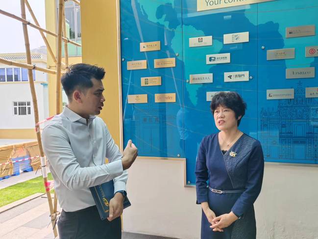 座谈结束后,澳门旅游学院公关部老师带领季荣一行参观了望厦校区,对澳门旅游学院所属的望厦迎宾馆、教学餐厅、厨艺教室、模拟前台等区域进行了详细介绍。