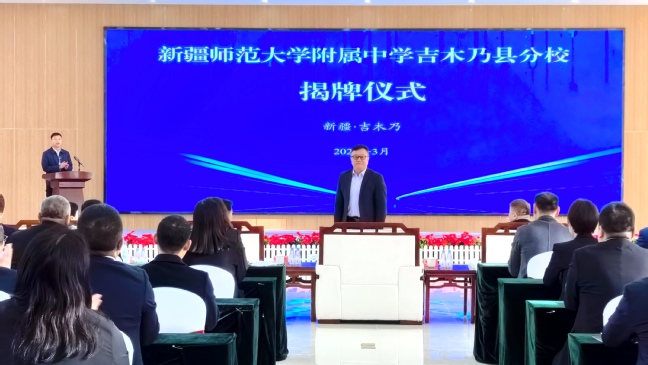 3月28日,校党委常委、副校长陈彤,玩滚官网附属中学党委副书记、校长杨艳等一行应邀前往阿勒泰吉木乃县参加吉木乃县政府、玩滚球的十大正规平台委托管理(合作办学)签约仪式,并共同为“玩滚球的十大正规平台附属中学吉木乃县分校”揭牌。