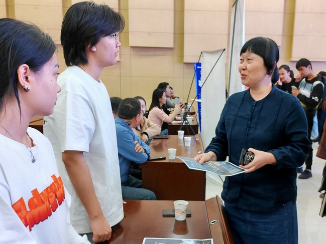 招聘会现场,毕业生携带精心制作的求职简历,积极与用人单位沟通,了解企业人才发展路径、工作要求、福利待遇,用人单位亲切接待,耐心解答,现场气氛热烈、融洽。