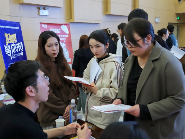 玩滚官网计算机科学技术学院党委书记张海军,学院党委副书记、纪委书记艾克白尔·艾尔肯,物理与电子工程学院党委书记李莉,学院党委副书记、纪委书记买星带领就业帮扶包联学生参加招聘会,并与用人单位和2024届毕业生交流沟通,了解用人单位的人才需求和学生应聘情况,鼓励毕业生积极主动应聘。