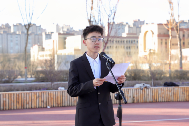 第四期胡杨先锋班学员、物理与电子工程学院2022级物理课程教学论专业硕士研究生杨天奇,第十六期青马班学员、马克思主义学院思想政治教育21-3班任芾斌同学作国旗下发言。他们表示那些为民族独立解放、为国家繁荣富强作出奉献和牺牲的英雄烈士,是民族的脊梁、时代的先锋,英烈事迹和精神是中华民族的共同历史记忆和宝贵精神财富,是激励全党全国各族人民不懈奋斗的力量源泉。他们号召同学们要铭记英烈们的丰功伟绩,努力学习科学文化知识,提高自身综合素质,以革命先烈为榜样,培养坚定的信念、顽强的意志和崇高的品质,努力成为担当民族复兴大任的时代新人。
