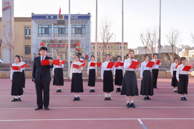 温泉校区升旗仪式现场