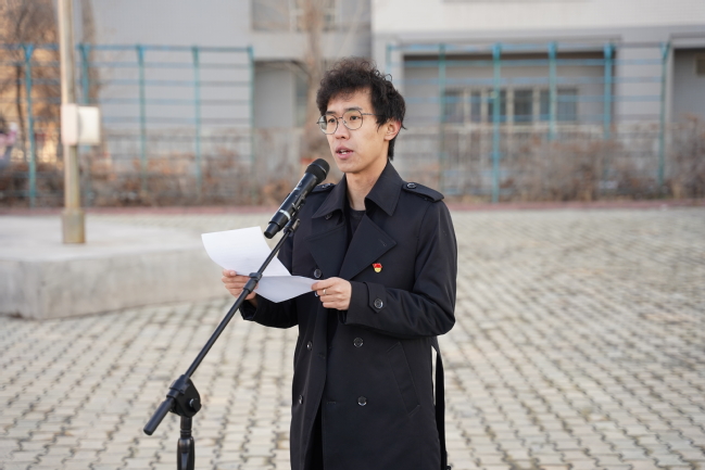 第十六期青马班学员、马克思主义学院思想政治教育21-3班任芾斌作国旗下发言
