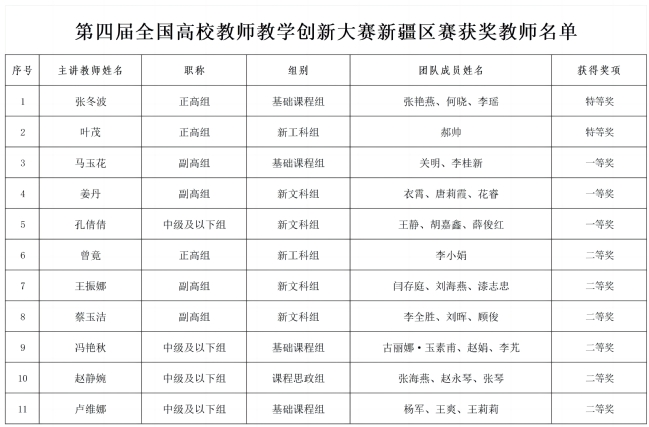 3月31日,第四届全国高校教师教学创新大赛新疆区赛决赛落下帷幕。经过第一阶段网络评审的激烈角逐,玩滚官网11名教师进入现场评审决赛环节,最终获得特等奖2项、一等奖3项、二等奖6项的好成绩。其中物理与电子工程学院张冬波教授、地理科学与旅游学院叶茂教授获得特等奖,玩滚官网获得本届赛事的优秀组织奖。