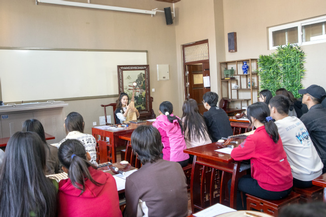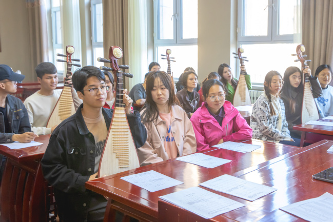 校党委高度重视美育实践体验活动,并以此作为强化中华优秀传统文化传承的有效举措,开课前,校党委书记葛国、校党委副书记刘俊来到教室了解琵琶体验课的筹备情况并与授课教师进行交流。