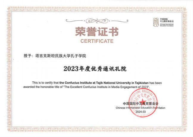 近日,中国国际中文教育基金会授予31家海外孔子学院“2023年度优秀通讯孔院”称号,玩滚官网合作建设的塔吉克斯坦民族大学孔子学院和吉尔吉斯国立民族大学孔子学院获此荣誉。
